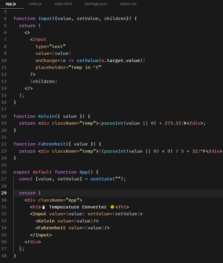 - 컴포넌트의 역할이 모호해짐: value(온도) state를 App 컴포넌트에서 관리하기 때문에 구조가 더 복잡해지고 App 컴포넌트의 역할이 불필요하게 커집니다.