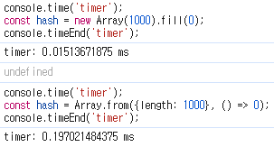 Array.from의 실행 시간이 더 짧게 나온 것은 아직도 궁금증을 해결하지 못했다.