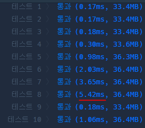 문제를 풀고 나서 첫 번째 코드보다 두 번째 코드가 좀 더 직관적인 것 같아서 수정 후 어떤 게 더 시간 복잡도가 낮은지 실행해 보았다.