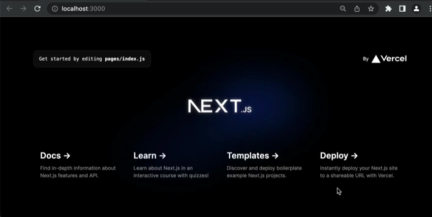 명령어 실행 후 http://localhost:3000에 접속하면 Next.js 애플리케이션이 실행됩니다.