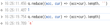 초기값을 안 줬더니 length property의 값이 'a'로 나오는 건 무슨 일인지... 그래도 이번 계기로 reduce 메서드에 대해서 자세히 찾아볼 수 있게 되어서 많은 것을 배울 수 있는 기회였다.