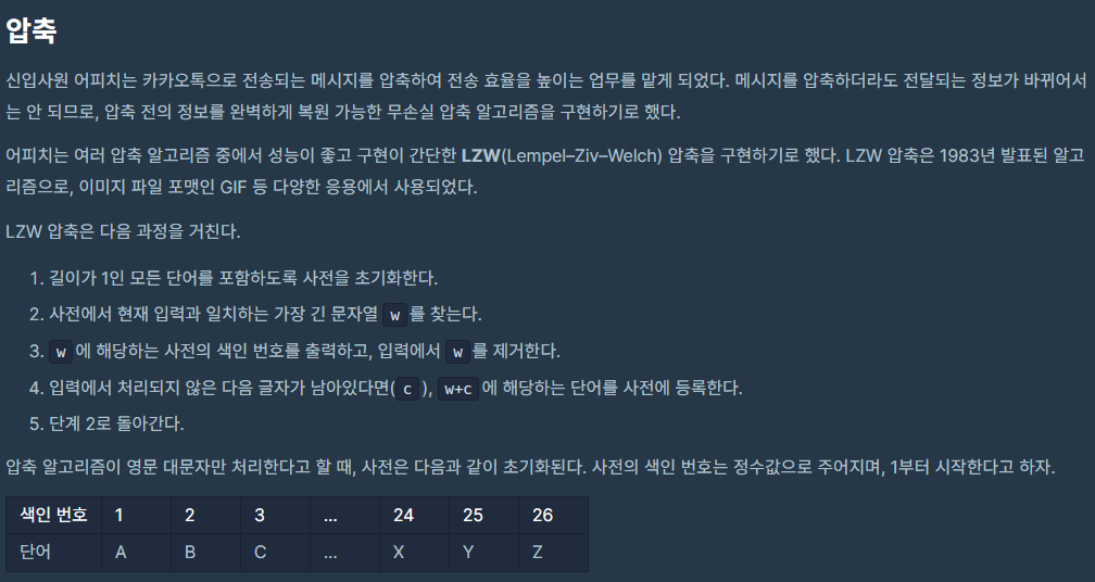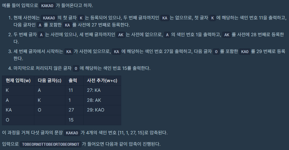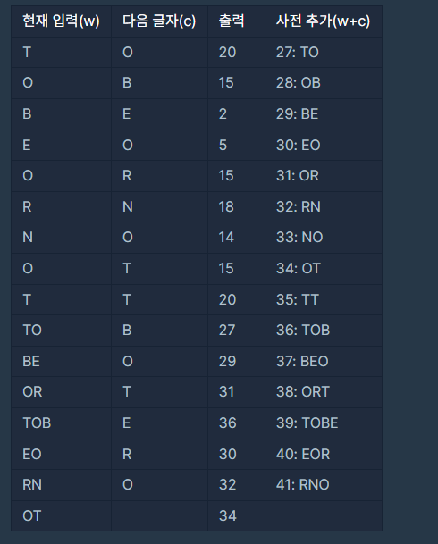 // 사전에 존재하지 않는 경우 dict 배열에 추가, answer에 인덱스 추가, 처리한 문자의 다음 문자를 리턴