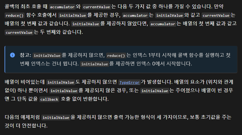 recduce 메서드를 항상 초기값 없이 사용해 왔는데, 이번 문제를 풀면서 멘붕이 왔다...😭😭