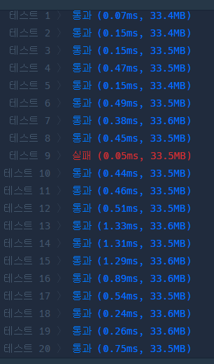 테스트 케이스 하나만 실패. 로직을 수정해 봐도 동일한 테스트 케이스만 실패하니까 뭐가 문제인지 몰라서 한참 고민했다...😂😂😂