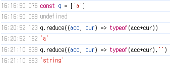 reduce 메서드에 초기값을 지정해 주지 않으면 타입을 'a'로 추론한다😱