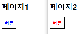 page1과 page2에서 각각 다른 css 파일을 import 했는데 같은 스타일이 적용되었습니다. 그 이유는 CSS 파일이 전역 스코프에서 동작하기 때문입니다. class name이 같다면 다른 파일을 import해도 우선순위에 따라 위와 같은 결과가 나오게 됩니다. 이런 CSS의 문제점을 해결하려고 나온 도구들이 CSS-Module, CSS-in-JS입니다.