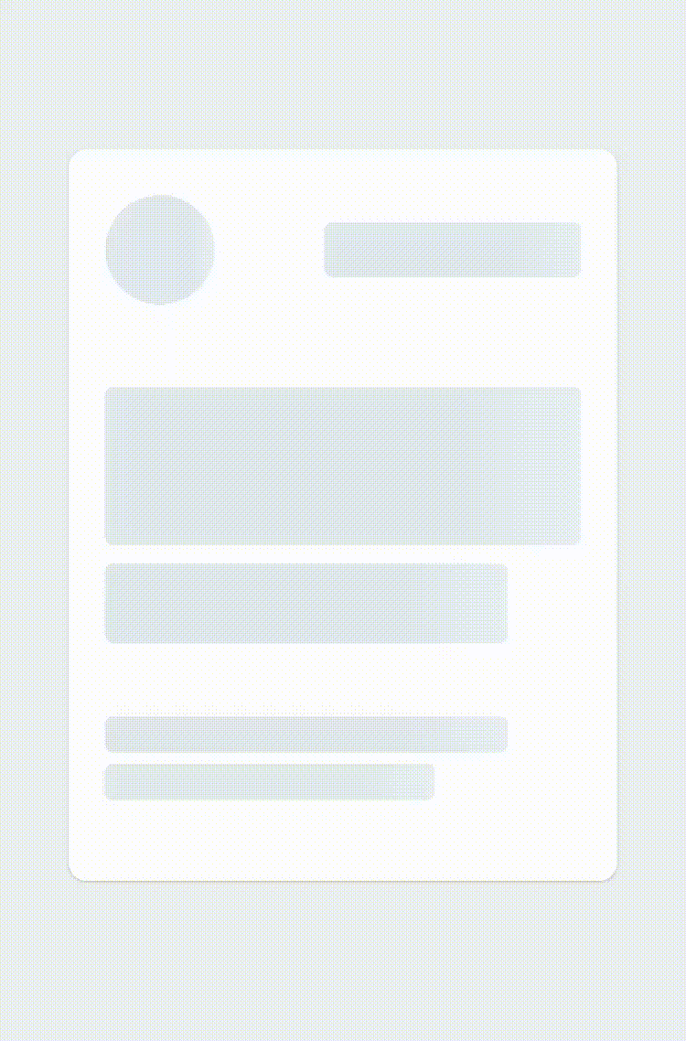 Skeleton UI는 실제 콘텐츠가 들어가게 될 자리를 잠시 대신할 빈 껍데기입니다. 일반적인 패턴은 흰색 배경과 반짝이는 CSS 애니메이션을 적용한다고 하네요.