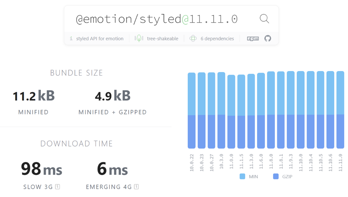 - 작은 번들 크기 : Emotion은 Styled-Components에 비해 번들 크기가 작아, 애플리케이션의 로딩 속도를 향상할 수 있습니다.