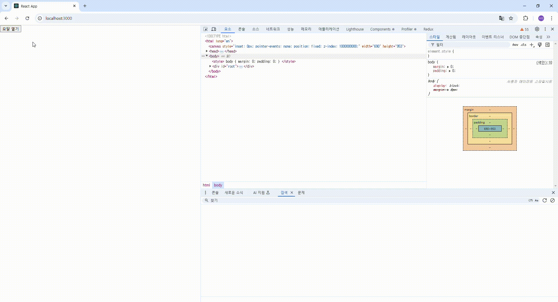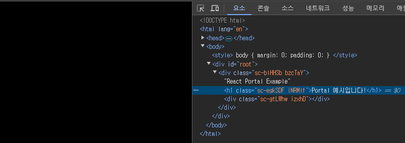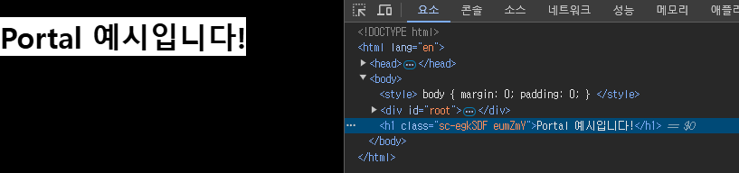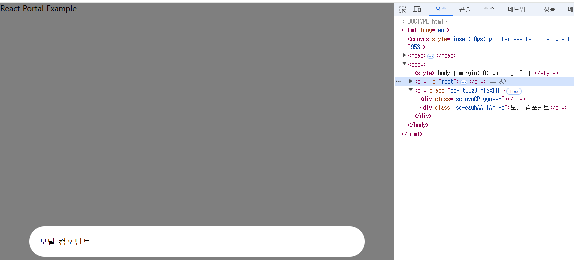 Modal 컴포넌트가 body 하위에 잘 렌더링 되었네요.