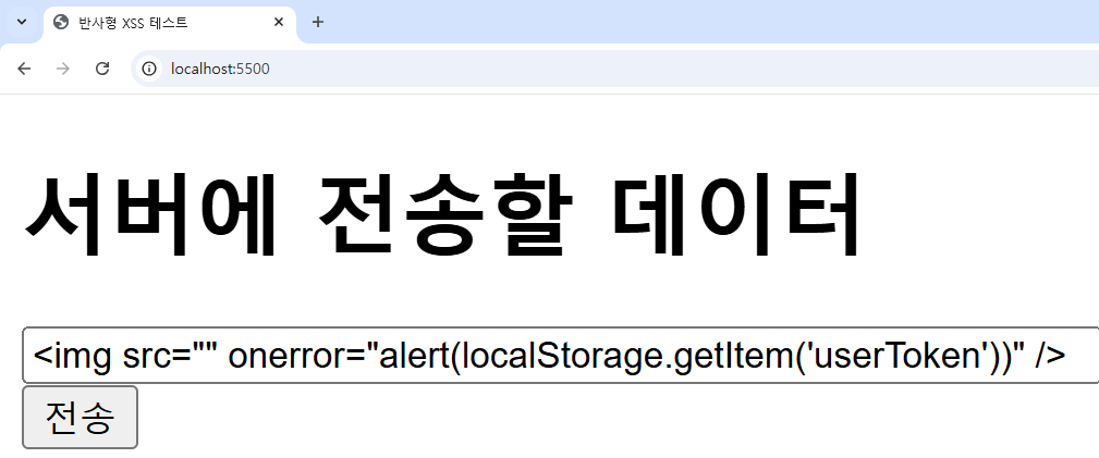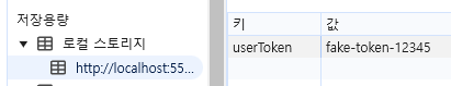 악성 사용자가 유저의 정보를 탈취하는 시나리오를 구현하기 위해 localStorage에 임의로 userToken이라는 값을 저장해 두었습니다.