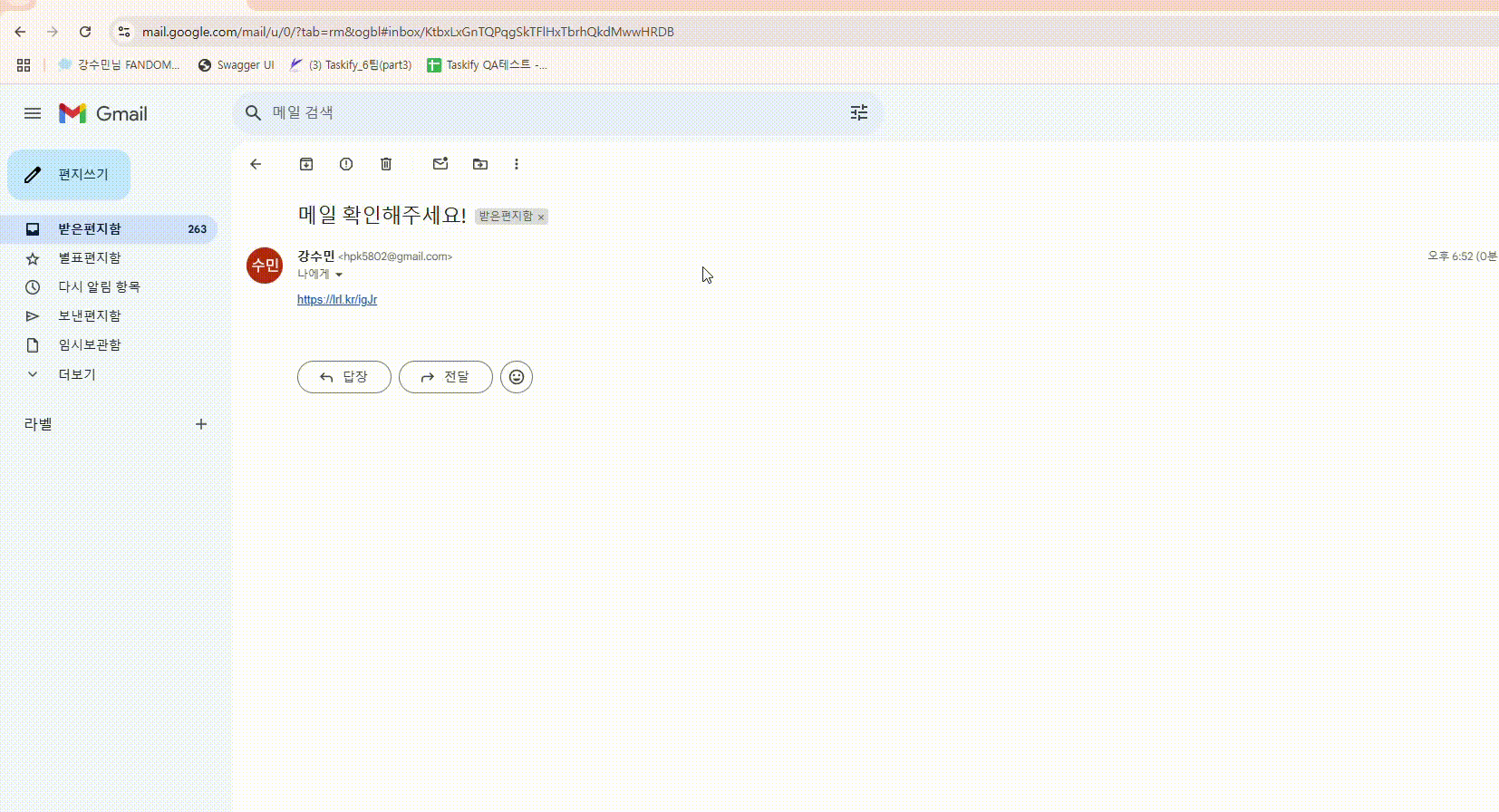 - 사용자는 메일을 통해 전달받은 URL 링크를 클릭합니다.