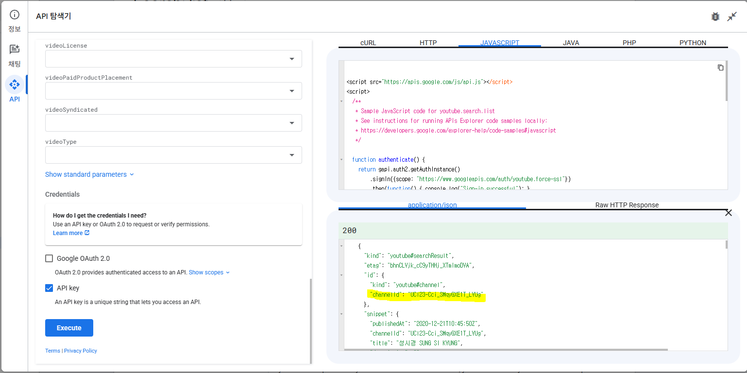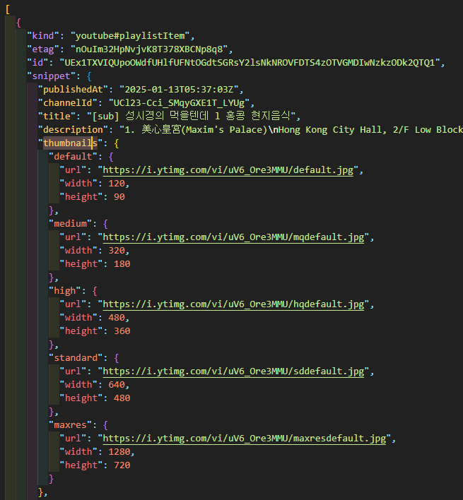 Youtube Data API의 공식 문서를 참고하며, 실제 HTTP 요청을 통해 원하는 데이터를 찾다 보니 시간을 너무 많이 쓴 것 같아요. 조금 지친 것 같지만 API 문서를 파악하는 능력을 길렀으니 만족합니다🤣