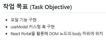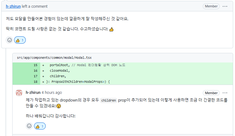 작업을 시작하기 전에 지난 프로젝트에서 팀원분께서 만들어주신 Modal 컴포넌트를 사용할 때 좋았던 점들과 불편했던 점들을 생각해 봤어요🤔