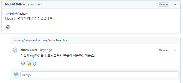 그래도 여러 번 수정 끝에 좋은 결과물을 만들어 내고, 팀원들에게 긍정적인 코드 리뷰를 받아서 기분이 좋네요🎉