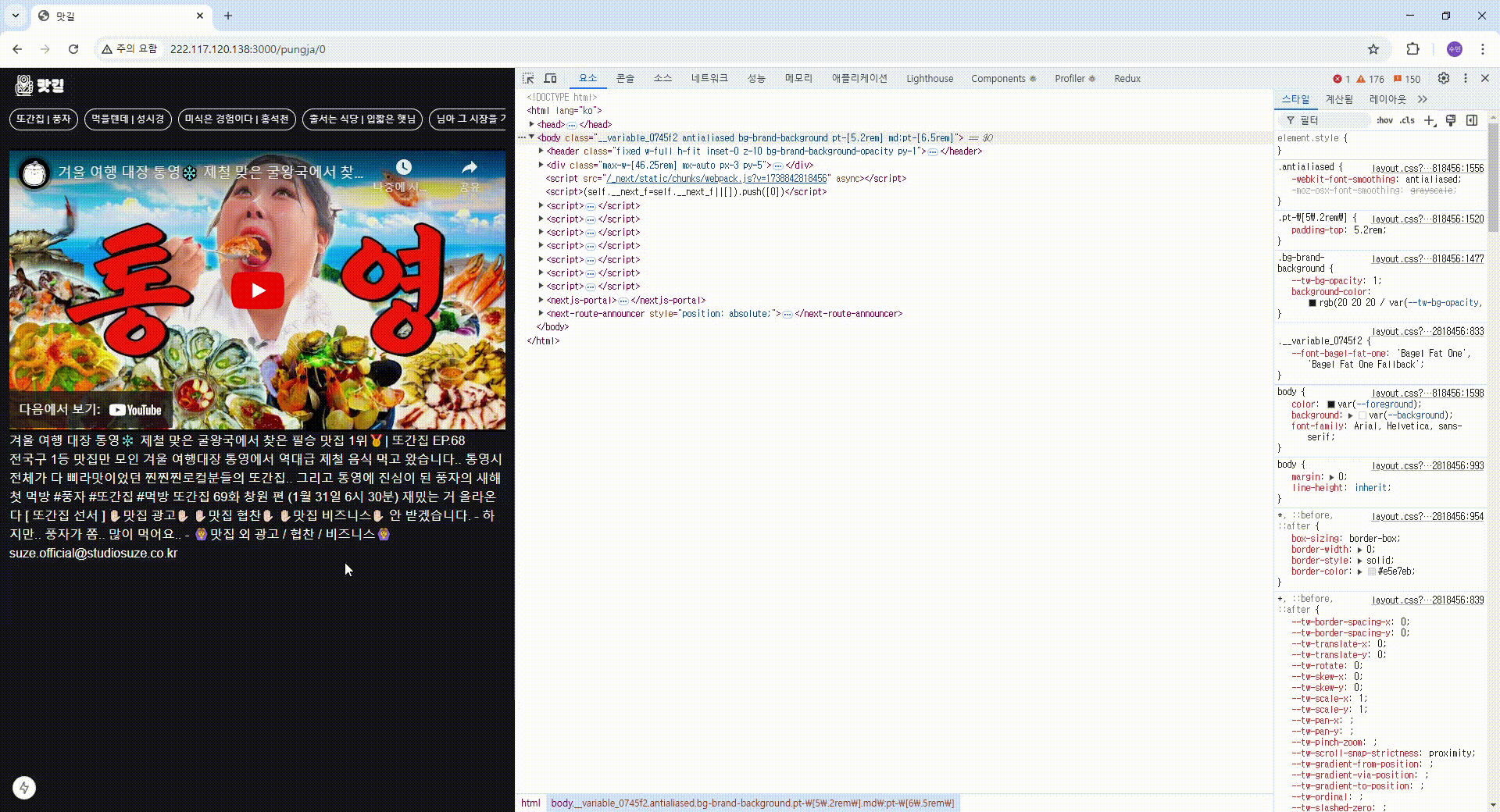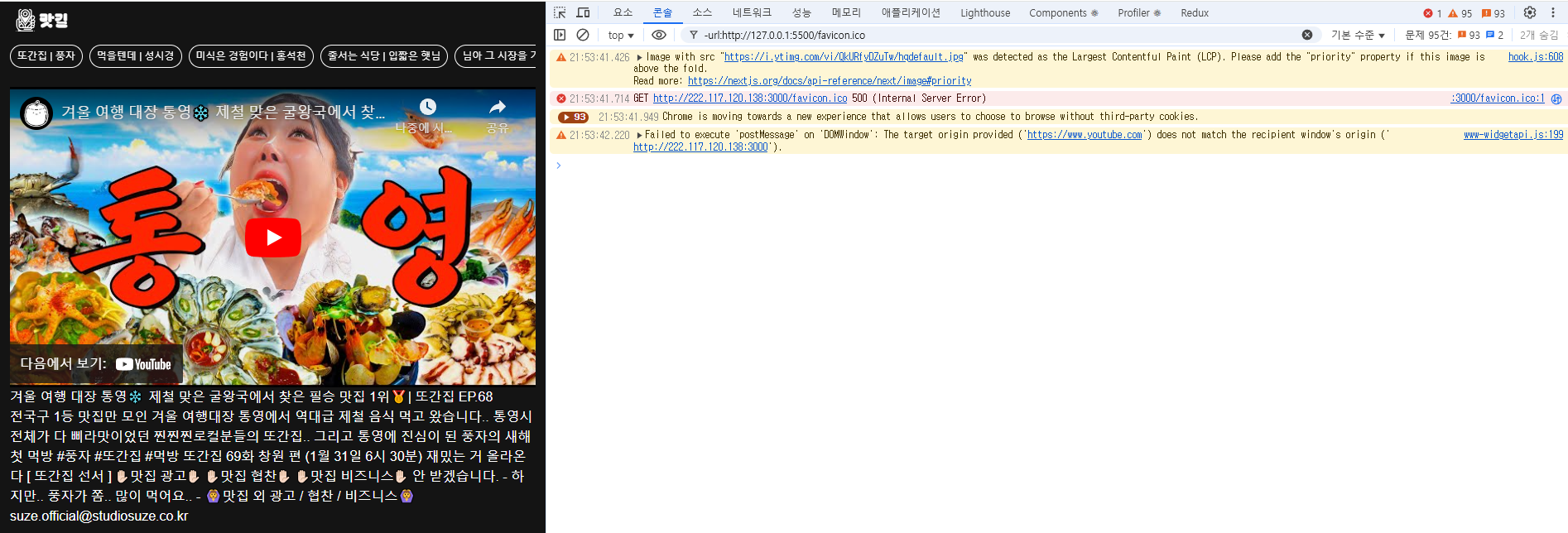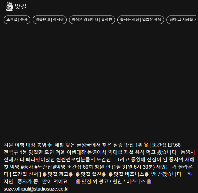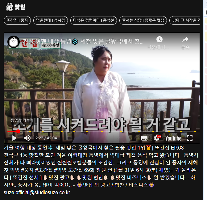 처음 기획 당시 페이지 상단에 맛집 소개 Youtube 영상을 띄우기로 했었네요.. 어떤 방법이 있는지 찾아볼게요👀