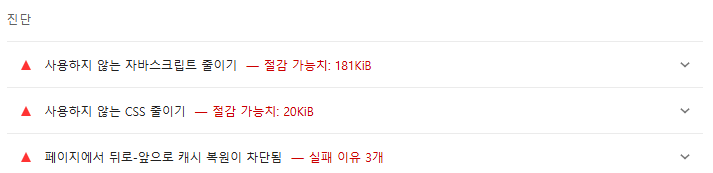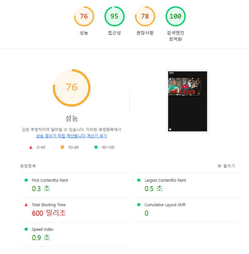 - 성능(performance) 점수 : 76에서 85로 9점 향상