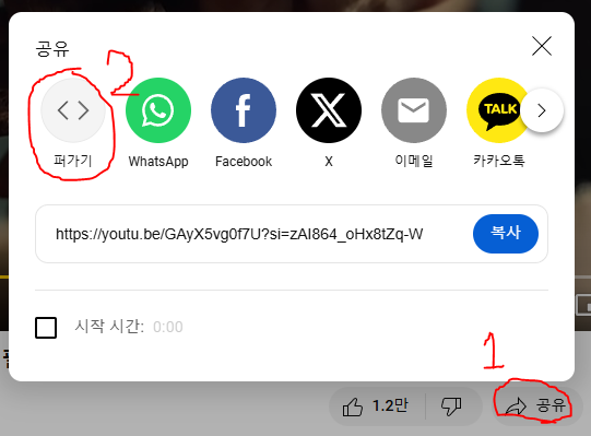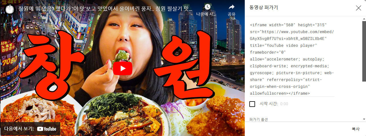 iframe 코드는 유튜브 영상에서 공유 → 퍼가기를 통해 제공하고 있어서 따로 작성할 필요 없이 가져다 사용했어요😊
