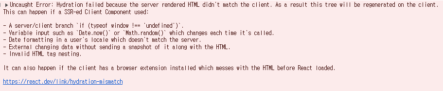 🚨 문제 상황 - Hydration Mismatch 에러