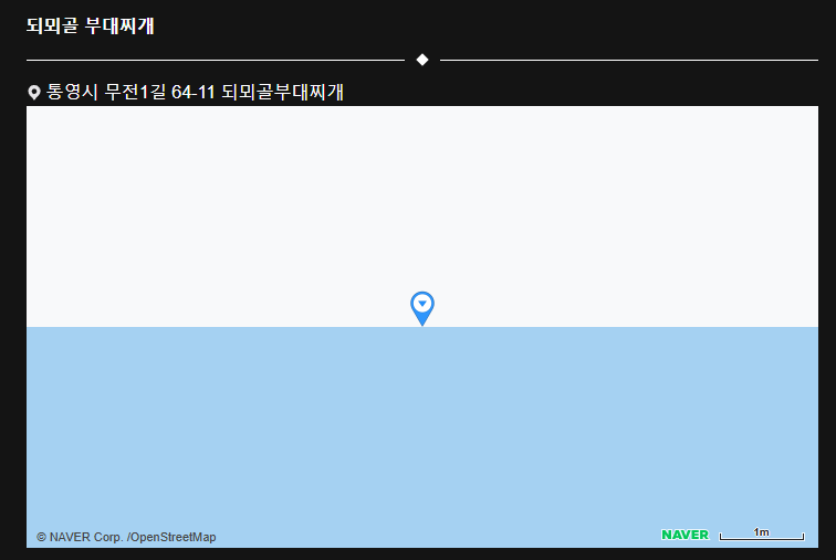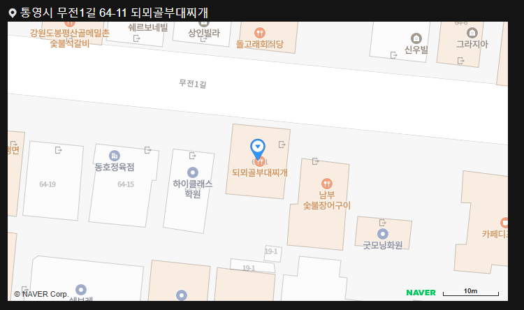 query: '통영시 무전1길 64-11 되뫼골부대찌개',