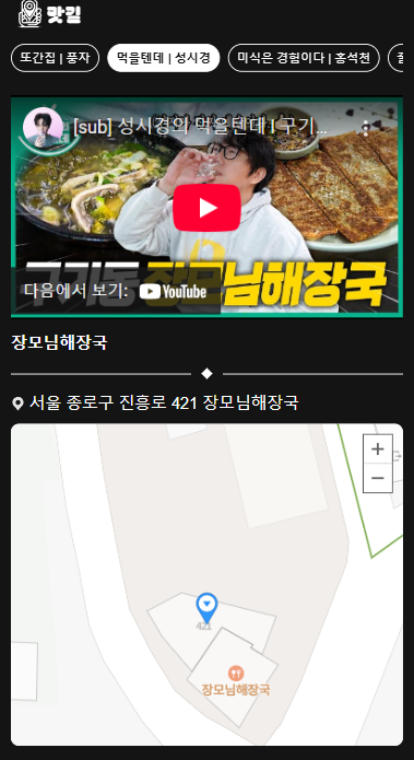 모바일 디바이스에서 터치로 화면을 움직일 때 지도가 움직여서 불편하다.- 맛길 서비스 내에 지도에서 길 찾기 기능을 사용할 수 있으면 좋을 것 같다.