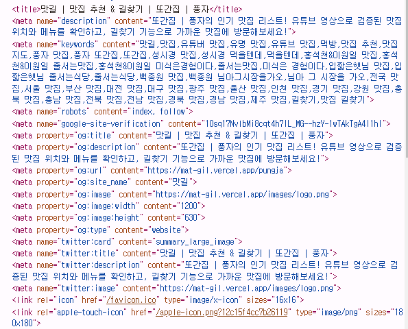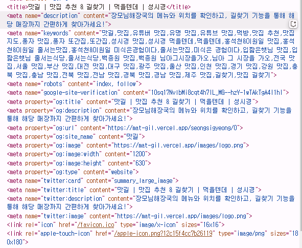 검색 엔진이 페이지를 더 잘 인식하고 사용자에게 더 나은 검색 결과를 제공할 수 있도록, 페이지별로 고유한 제목(title)과 설명(description) 등의 정보를 동적으로 생성했습니다.