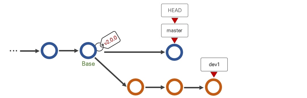 master와 dev1이 각각 참조하는 commit은 Base로 동일 선상에 위치하고 있다. 이때 두 브랜치는 Fast-forward 상태에 있다고 한다.